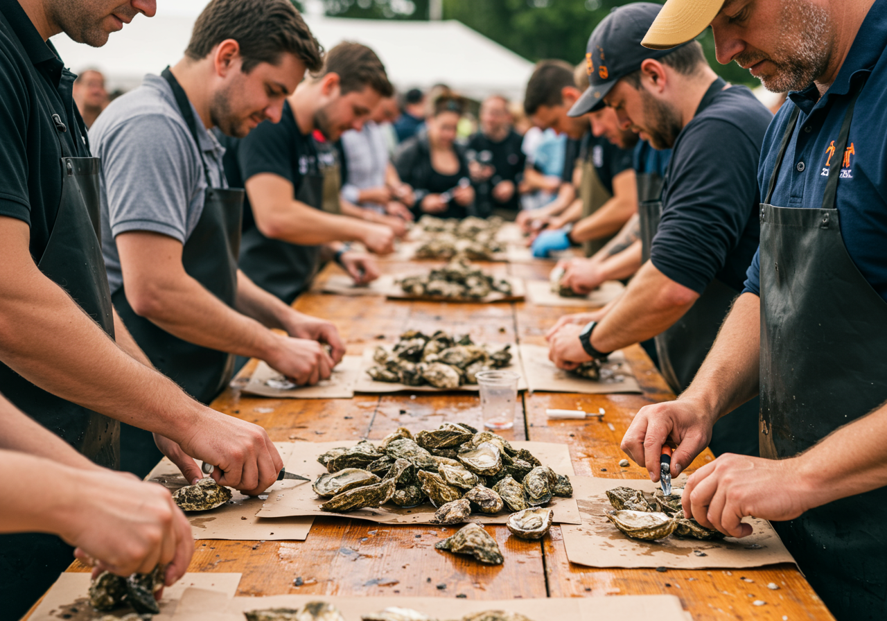 Shucking is the first step and involves sliding a small knife into the clamshell to open it. The festival highlights this event with two separate contests. The